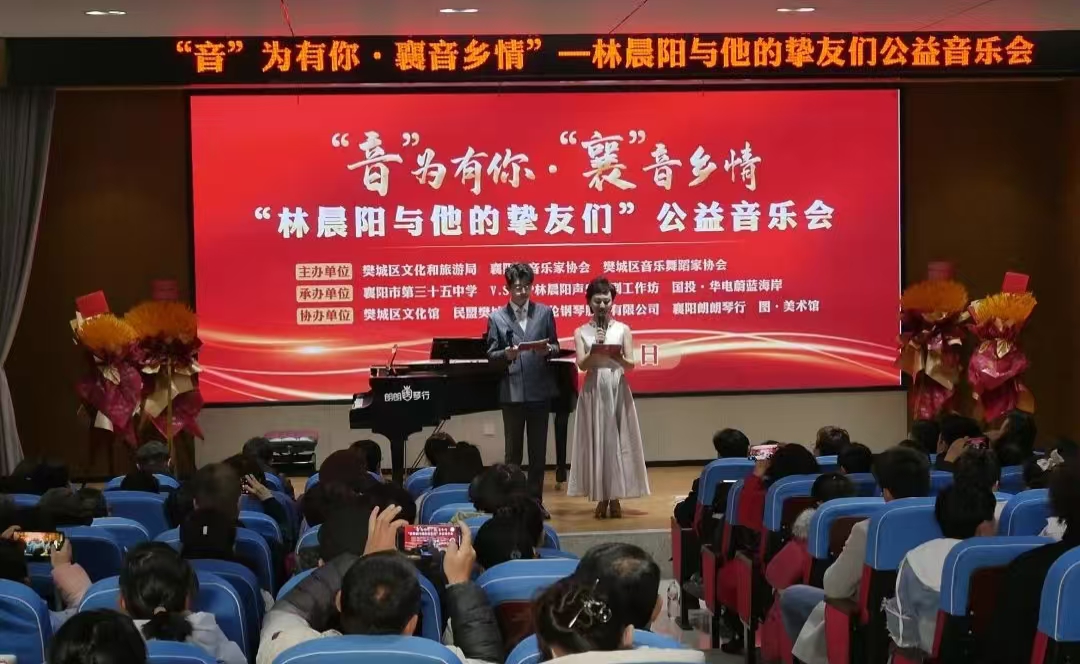 2月23日下午,由襄阳市文联指导,襄阳市音乐家协会、樊城区文化和旅游局、樊城区音乐舞蹈家协会联合主办的“‘音’为有你·‘襄’音乡情”——林晨阳与他的挚友们”公益音乐会,在襄阳市第三十五中学举行。湖北金编钟奖获得者、男中音歌唱家林晨阳,与他的音乐挚友们,用悠扬的歌声,为数百名音乐爱好者带来听觉盛宴。