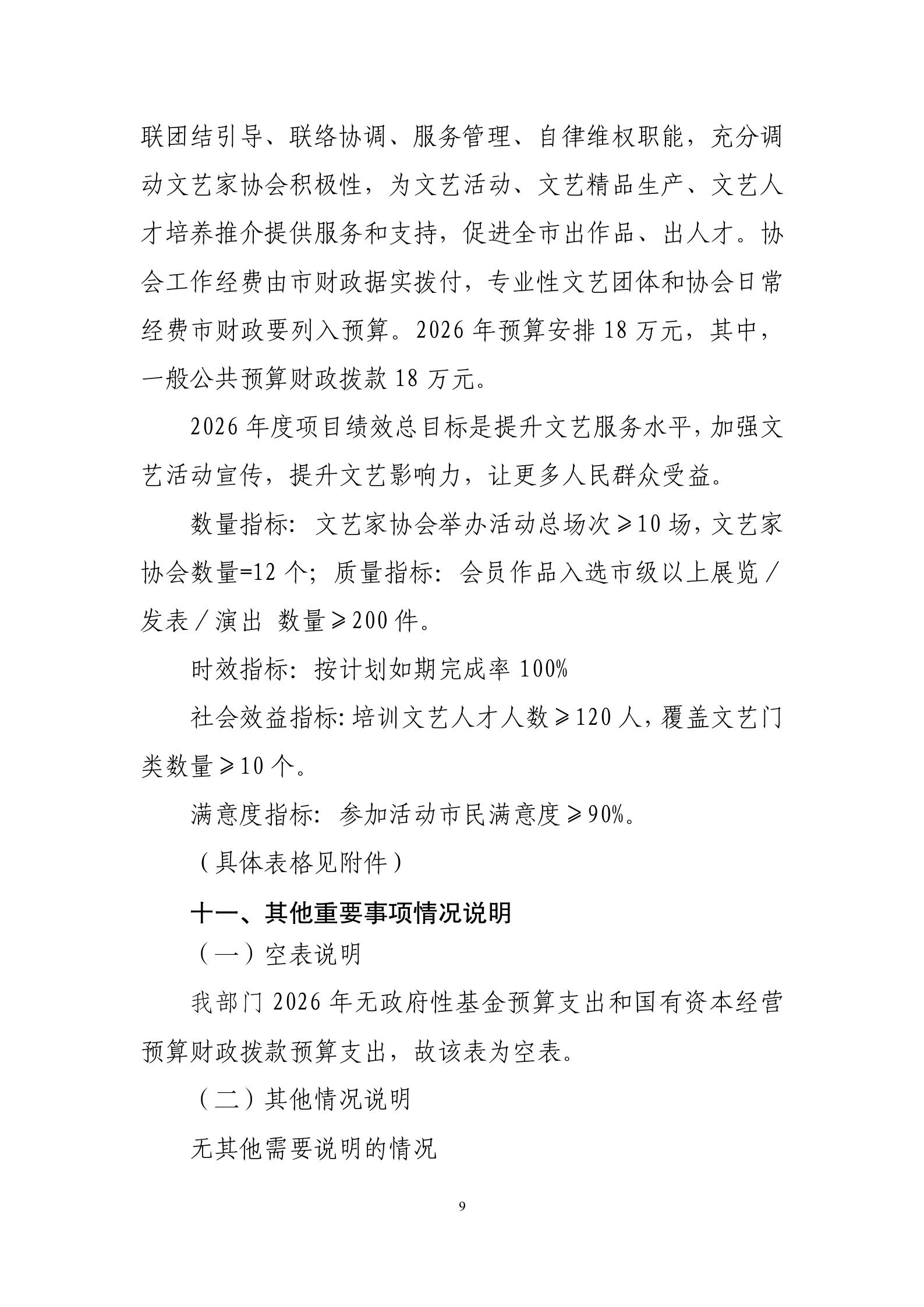 2026年市文联本级预算公开情况说明